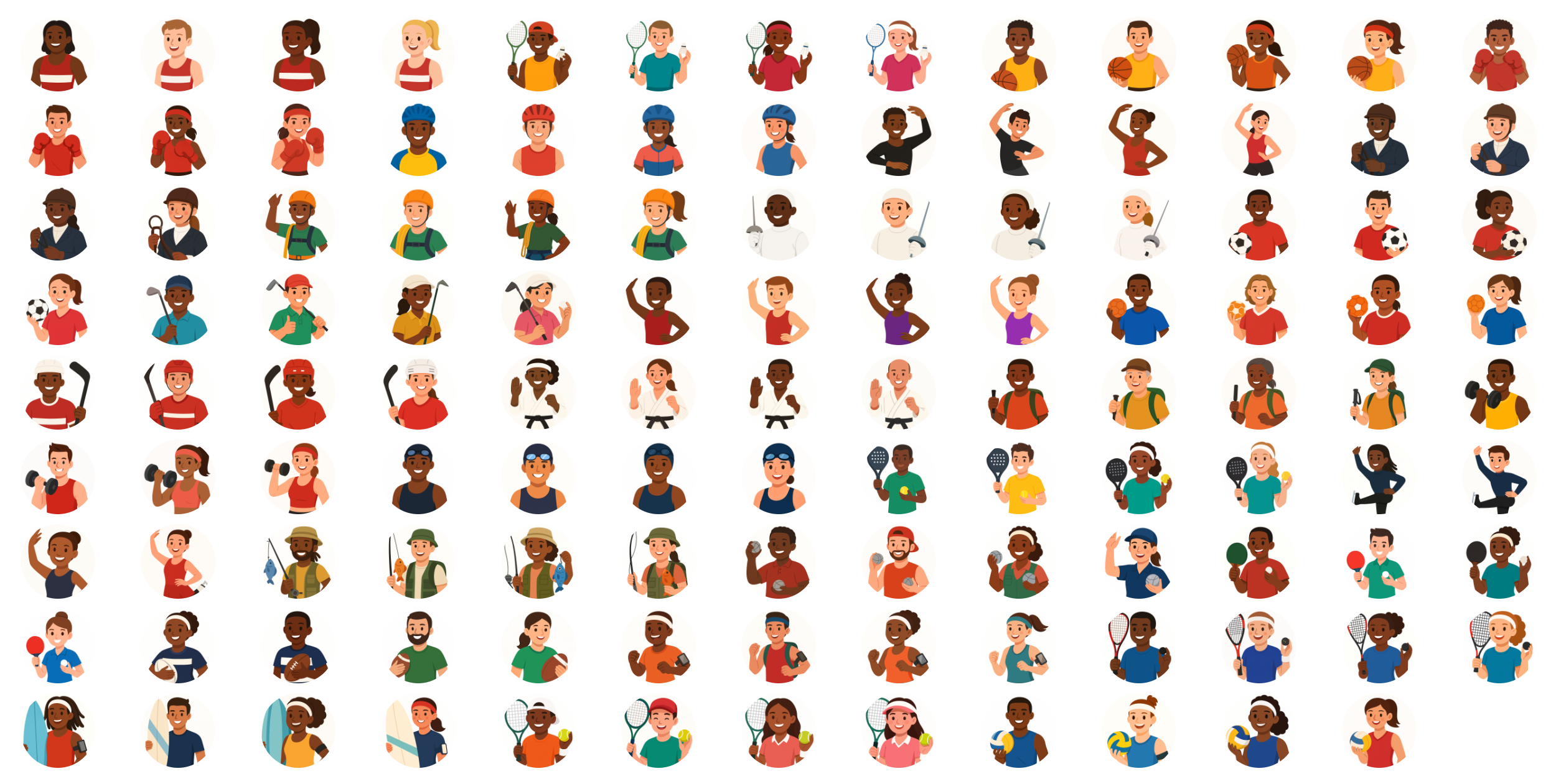 Vous retrouverez des personnages pour de nombreux sports, dont :